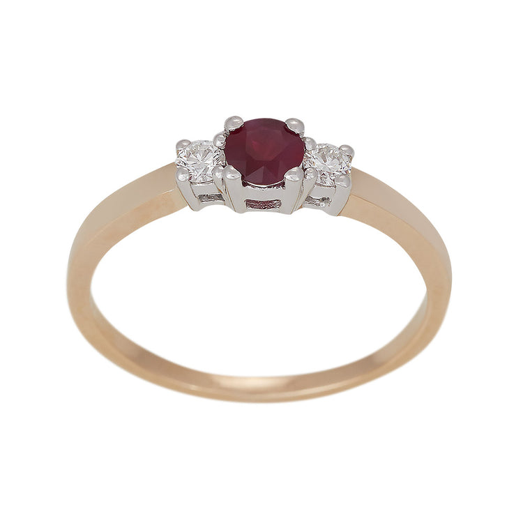 14 kt. guldring m/ 0,116ct TW/SI og rubin