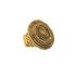 Ring Anna er et håndlavet statement-smykke fra Ibu Jewels, skabt med et smukt og detaljerigt udtryk i guldfarvede messing- og glasperler. Perlerne er syet på en hæklet bagside, hvilket giver ringen et unikt og kunsthåndværksmæssigt udtryk. Den brede ringskinne er lavet af messingperler på elastik, hvilket gør ringen fleksibel og behagelig at bære. Den runde guldfarvede plade danner ringens iøjnefaldende midtpunkt og gør designet elegant til både hverdag og fest.