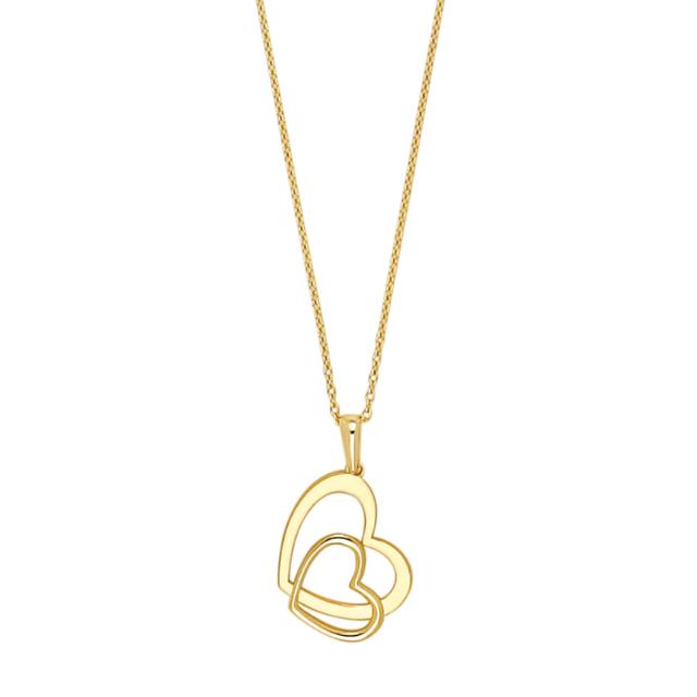 8kt. guldvedhæng dobbelt hjerte inkl. forgyldt