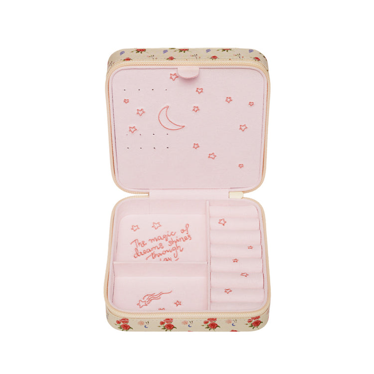 Opbevar dine skatte sikkert i vores Smykkeskrin, som er pyntet med et print af roser og muslinger. Det er inspireret af Afrodite, og dets chamerende forening af elegance og overjordisk skønhed er et yndefuld komplement til dine værdsatte smykker.
