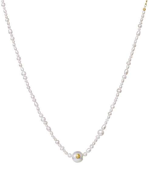 Halskæden er kreeret af naturperler, som kan variere i størrelse og udseende.
