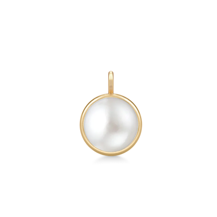 Our classic and iconic Prime pendant is made of 14 karat recycled gold with our iconic Julie Sandlau satin finish. This handmade pendant features a cabochon-cut colorful quartz or freshwater pearl, adding subtle beauty. The gemstone or pearl measures 10 mm in diameter, and framed with the signature gold belt. It's a perfect opportunity to create an elegant set by combining this pendant with our matching Prime earrings or with other Julie Sandlau pendants like the Pure pendant. - 14 karat recycled gold- Satin finish- Height: 17mm- Width: 11mm