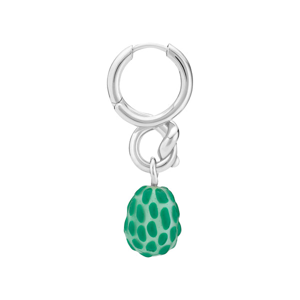 Birds Nest Green single ørering i rhodineret sølv fra Maria Black - Svampeinspirerede former er forbundet med en klassisk ferskvandsperle. Perlerne er naturlige og vil derfor variere en smule i størrelse og form.