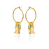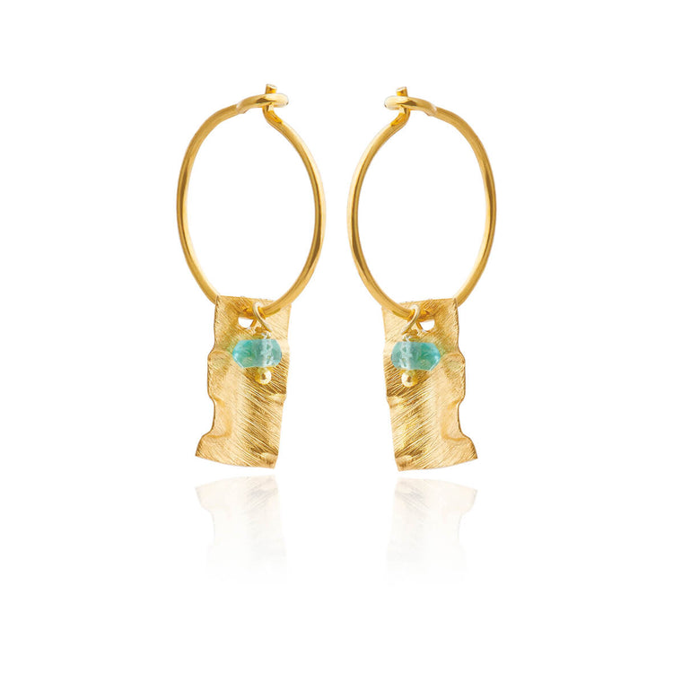 Ørebøjle med øje, forgyldt sølv, 15 mm med rynket rektangel og facet apatit