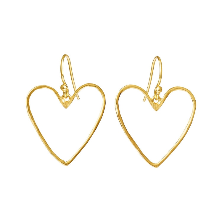 forgyldte øreringe 25 mm hjerte i hamret overfl.
