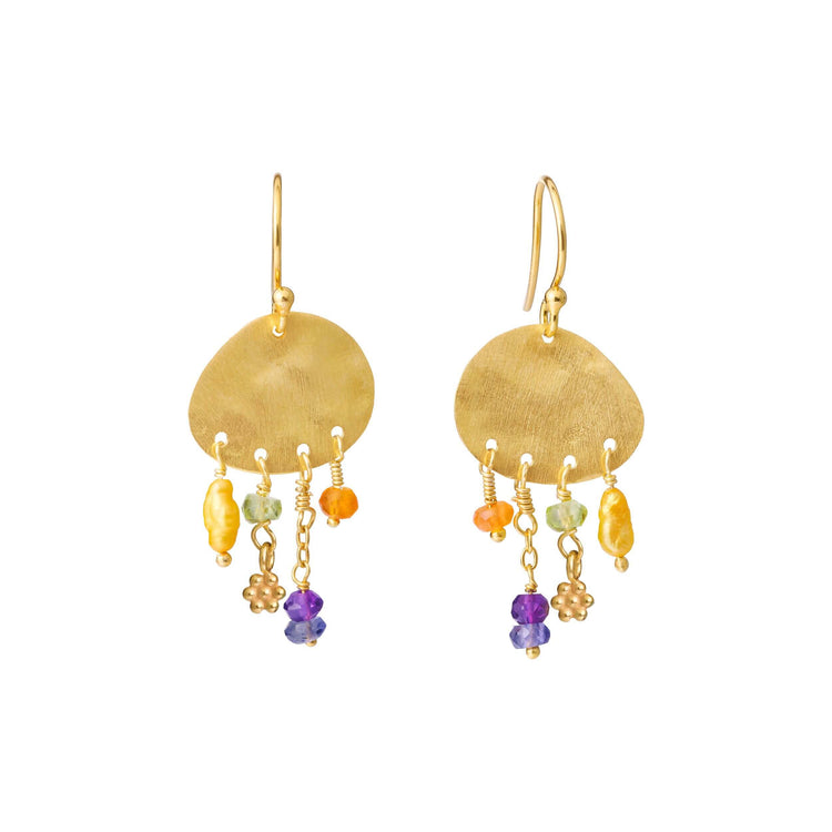 Ørering (krog), forgyldt sølv, amorf element med ametyst, iolit, karneol, peridot, farvede ferskvandsperler