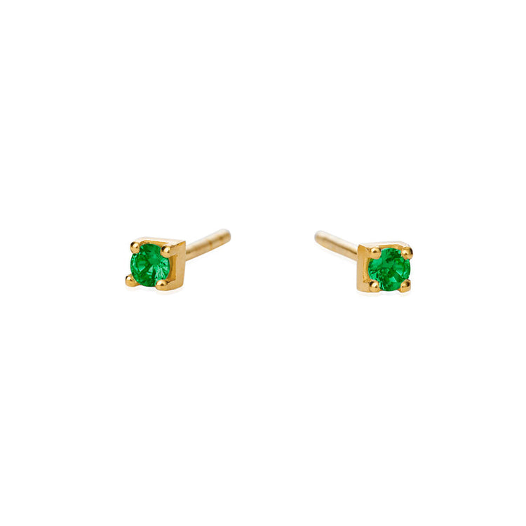Ørestik, forgyldt sølv, 3 mm firkantede smaragdgrønne zirkoner
