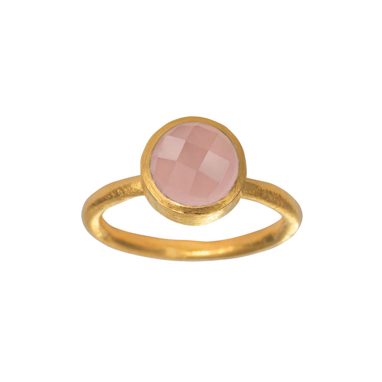 Ring, forgyldt sølv, bred kant, 10 mm facet lys pink krystal størrelse 48