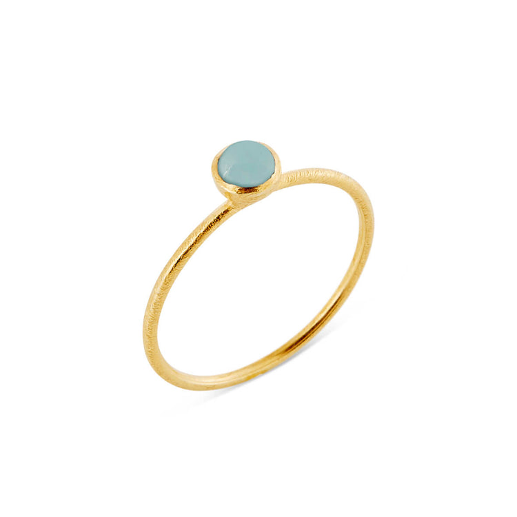 Ring, forgyldt sølv, cabochon 4 mm lyseblå krystal størrelse 48