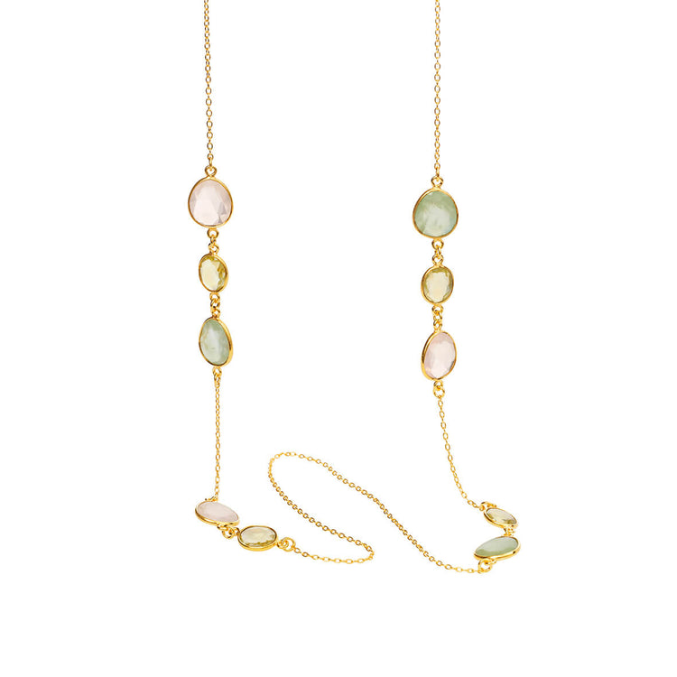 Halskæde anker forgyldt rosenkvarts, lemonkvarts, prehnit - Susanne Friis Bjørner