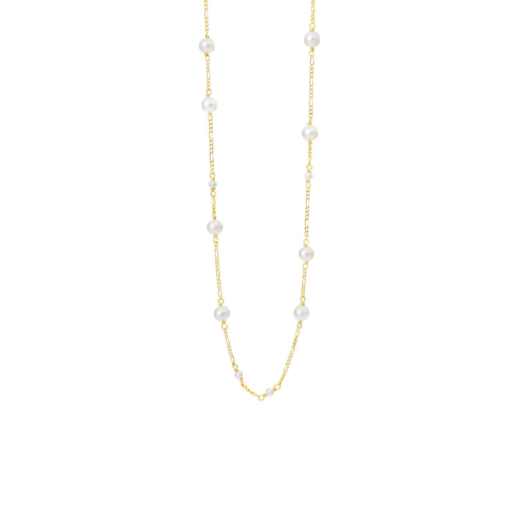 Halskæde forgyldt figaro panser med facet 1,4 mm og hvid fvp - Susanne Friis Bjørner