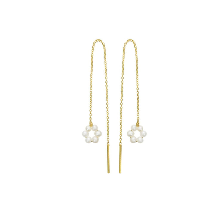 Ørekæde, sølv, 8 mm åben hvid ferskvandsperleblomst ca. 10 cm