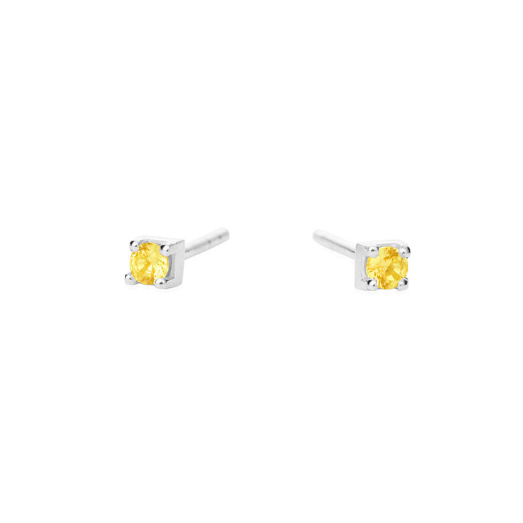 Ørestikker sølv, 3 mm firkantet gul zirkon