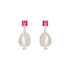 Ørering (nitter), sølv, pink zirconia firkant med hvid ferskvandsperle under