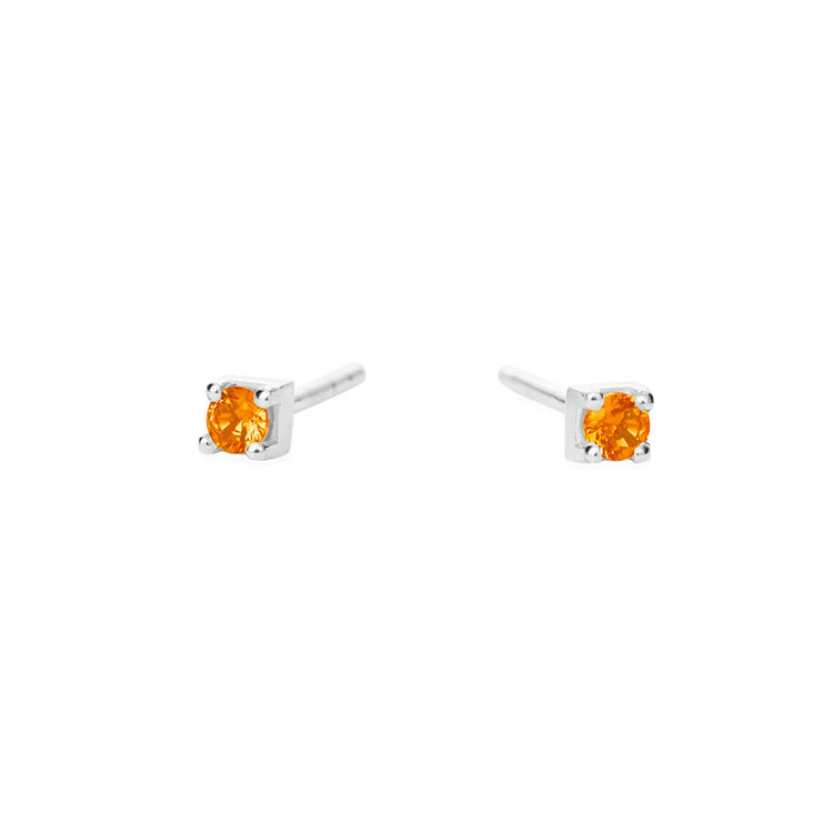 Ørestik, sølv, 3 mm kvadratisk orange zirkon