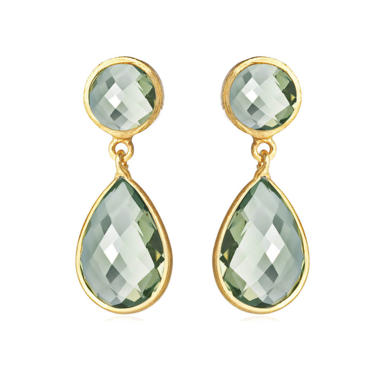 Ørestikker forgyldt dråbe facet 12x16 mm grøn kvarts - Susanne Friis Bjørner