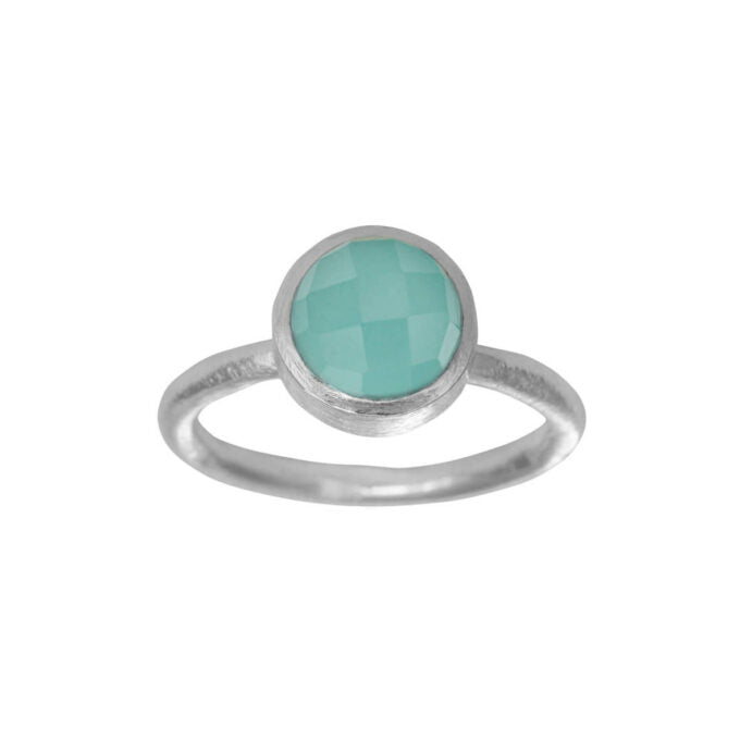 Ring sølv rund facet lysblå crystal Susanne Friis Bjørner