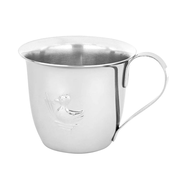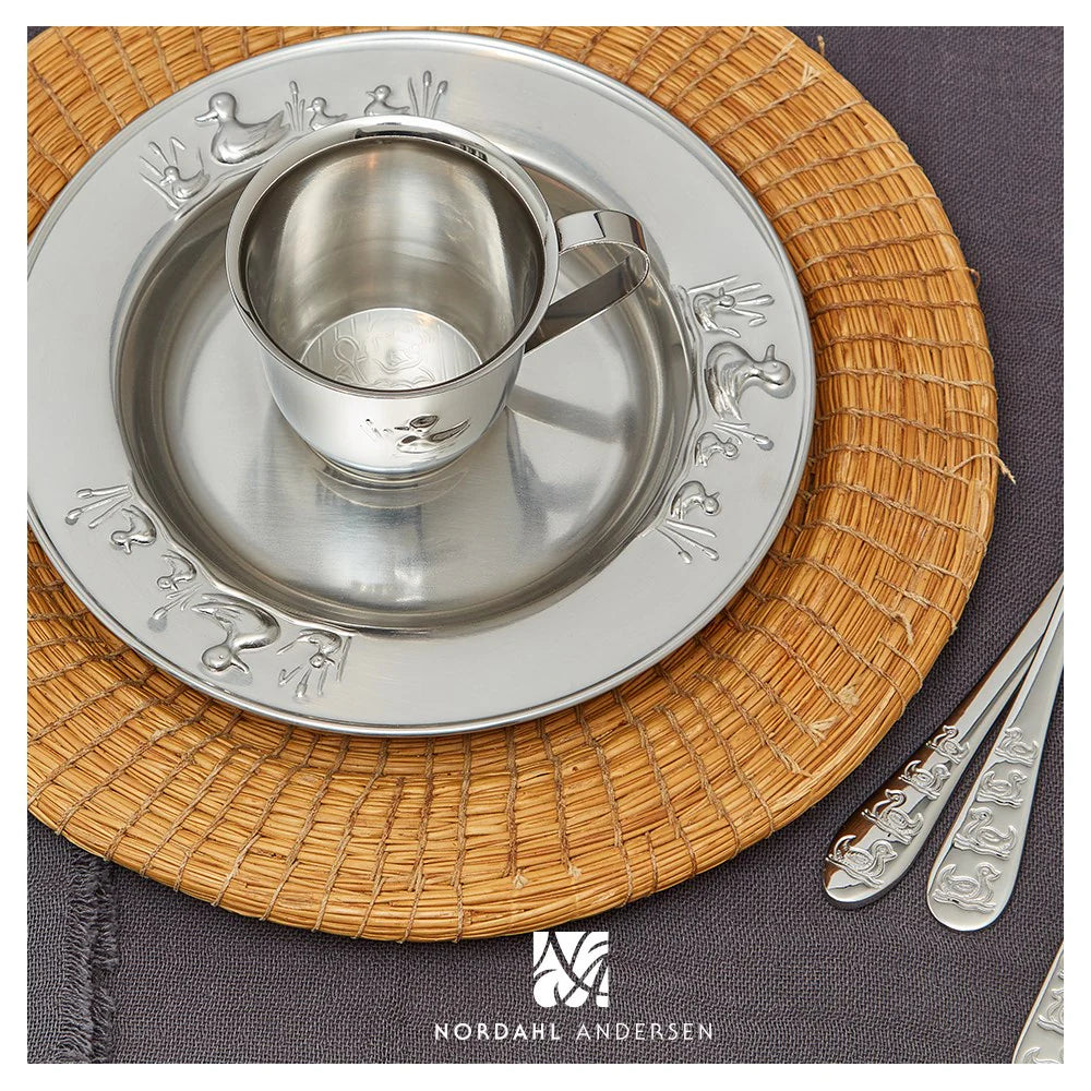 Et klassisk og tidløst krus i rustfrit stål fra Nordahl Andersen, dekoreret med en fin lille and på siden. Kruset er både dekorativt og funktionelt, og det robuste materiale gør det velegnet til daglig brug. Med sin kompakte størrelse på 6 cm er det ideelt til små hænder og en oplagt gaveidé til barnets første år – hvad enten det er til dåb, navngivning eller fødselsdag.