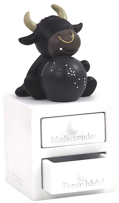 Tand/hårlok æske med stjernetegn. Planeten med stjernebilledet lyser i mørket.