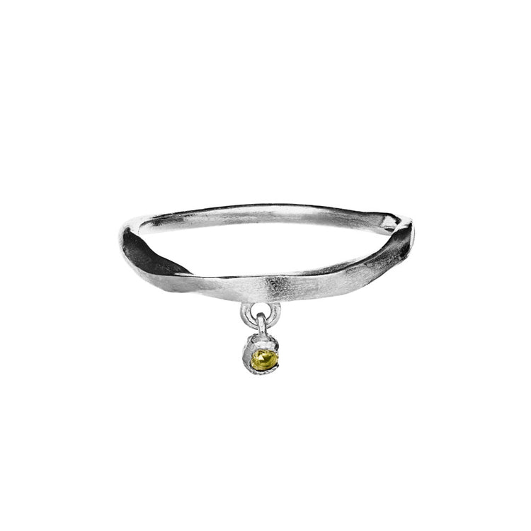 Signe ring sølv Maanesten - Signe er en helt enkelt og fin ring. Den har et lille twist i form af den bevægelige fatning, hvor der sidder en skinnende peridot. Bær den alene eller stack den med andre ringe fra Maanesten for at skabe dit eget look.