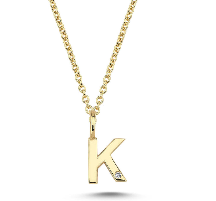 14kt. bogstav vedhæng K pavè 1x0,005ct W-SI
