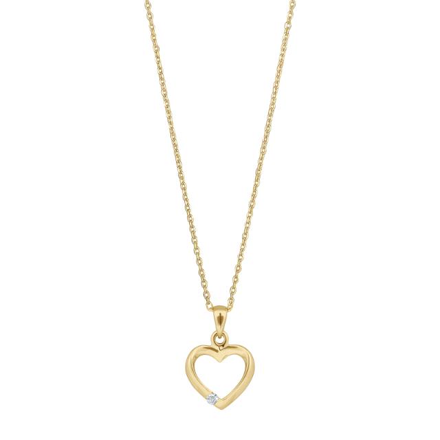 14kt. Guldhjerte m. Diamant 0.022ct W/SI inkl. Forgyldt Kæde – Siersbøl