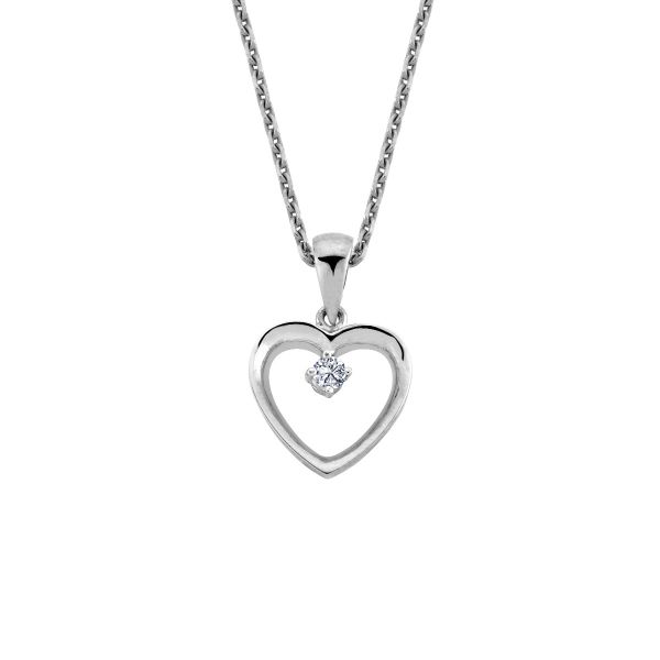 14kt. Hjerte Vedhæng i Hvidguld med 0,02ct. W-si
