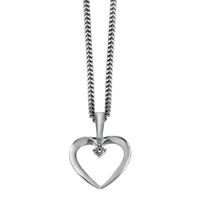 Et smykke med diskret luksus og klassisk elegance – dette fine vedhæng fra Siersbøl er udført i 14 karat hvidguld og prydet med en brillant på 0,025 ct. w/si. Den bløde hjerteform og den funklende diamant skaber et romantisk udtryk, der gør smykket ideelt som gave til en særlig person eller som en personlig detalje i din egen smykkesamling. Vedhænget leveres med en matchende kæde, så det er klar til at blive båret med det samme.