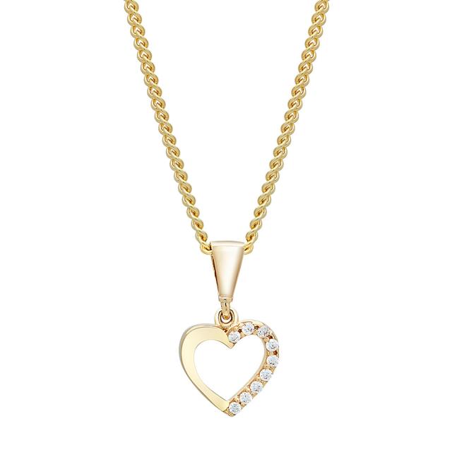 Siersbøl hjertevedhæng 8kt guld med zirkonia og forgyldt kæde – 10 mm