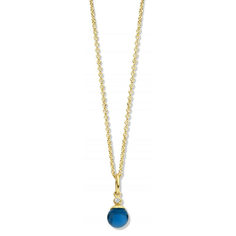 Figaro halskæde i sterlingsølv forgyldt, med den smukkeste 6mm blå kugle og zirkonia sten, som gør halskæden så elegant og fin.