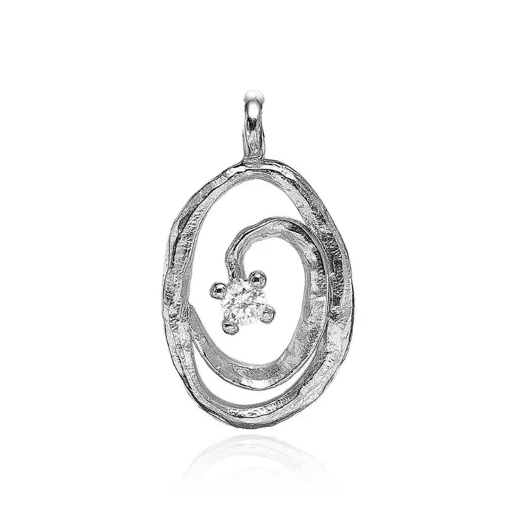 Et unikt og elegant halssmykke udformet som en spiral med en let skæv facon, der giver et råt og moderne udtryk. Smykket er fremstillet i ægte sølv og prydet med en smuk zirkonia, som tilfører et strejf af eksklusivitet. Perfekt til dig, der ønsker et vedhæng med karakter og stil. Leveres med justerbar ankerkæde.