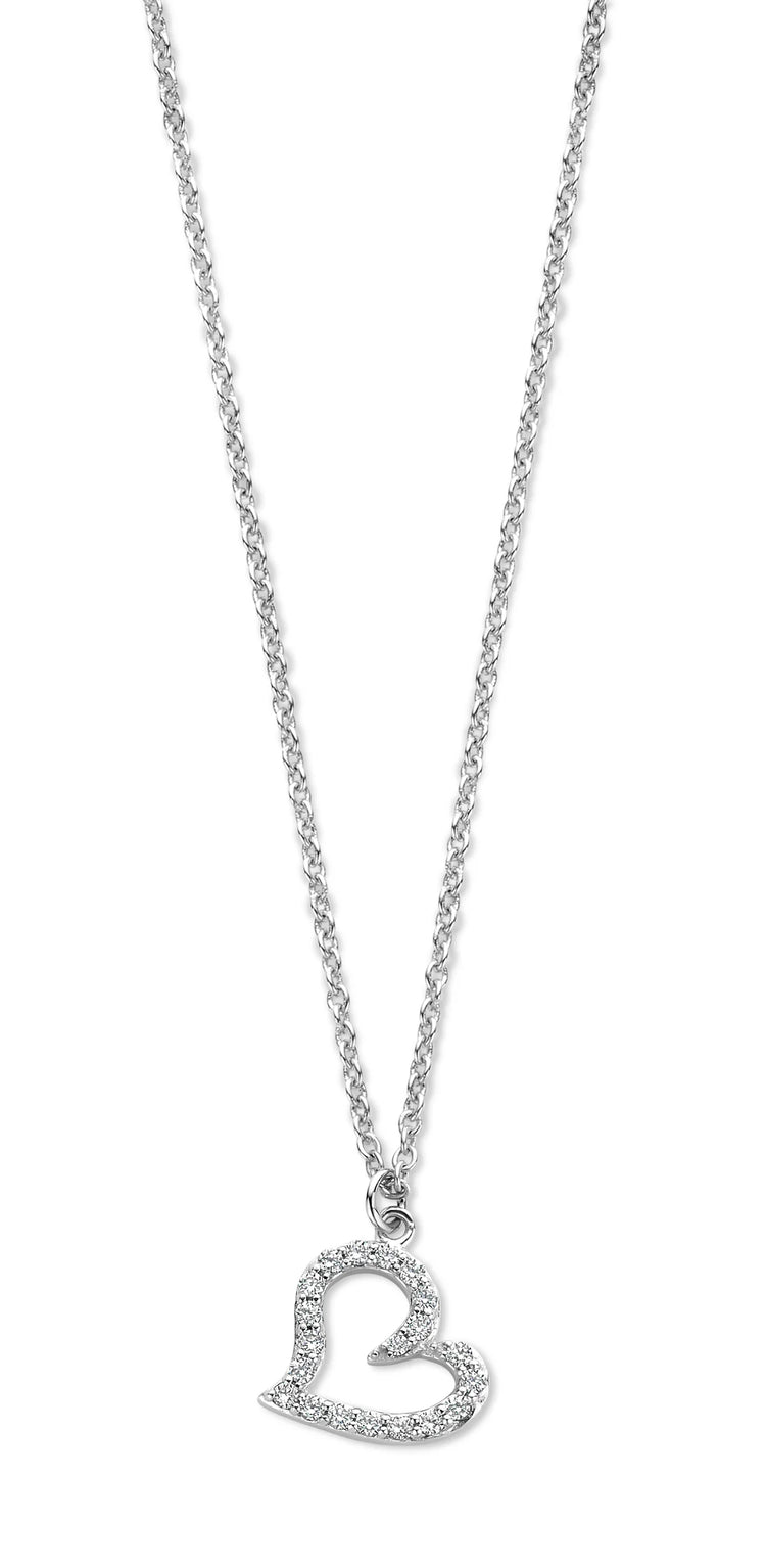 Et romantisk og stilfuldt vedhæng fra Spirit Icons i Sterling sølv (925), formet som et hjerte og prydet med funklende zirkonia. Halskæden måler 45 cm og er perfekt til dig, der ønsker et feminint smykke med et elegant udtryk.