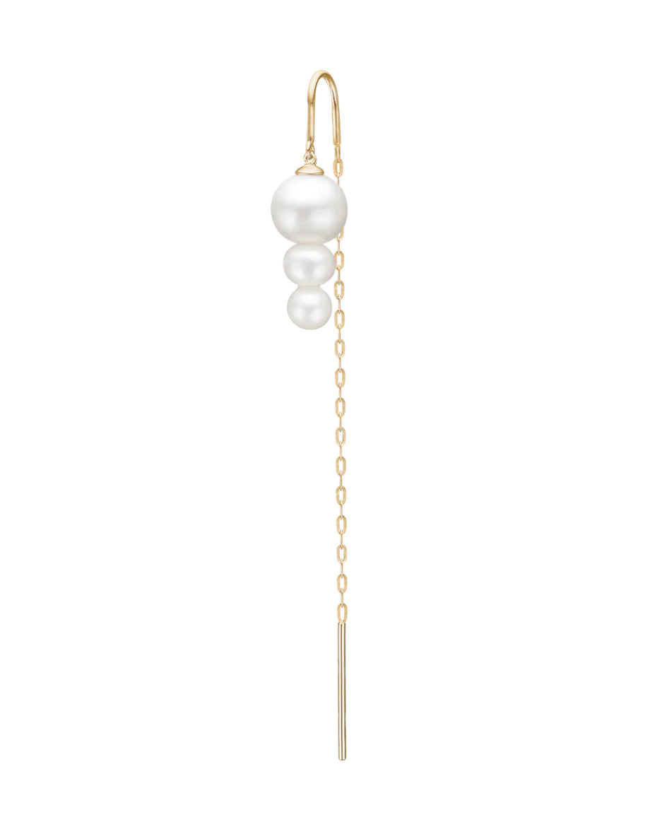 14 Kt. Eden 1. stk. kæde ørering Julie Sandlau - Eksklusiv single chain earring karakteriseret ved naturlig perfektion i dråbeform. Øreringen er produceret i 100% recycled 14 karat guld, og bærer en unik variation af de fineste, hvide ferskvandsperler med et silkeblødt skær.