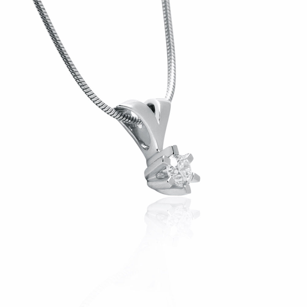 Brillanz vedhæng i 14 karat hvidguld med 0,25ct W-Tca/SI diamant. Smykket er designet og udført af Jan Jørgensen.