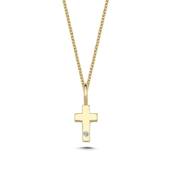 14kt. Kors Vedhæng 0,005ct. W-si 6,5mm Nuran