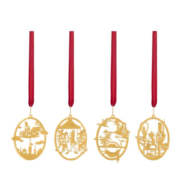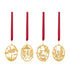 Ophængene er 6 cm høje. I æsken ligger der både røde og gule bånd til ophæng, så de kan bruges til f.eks. jul og påske. De leveres i en fin lys gaveæske med de velkendte harlekintern.