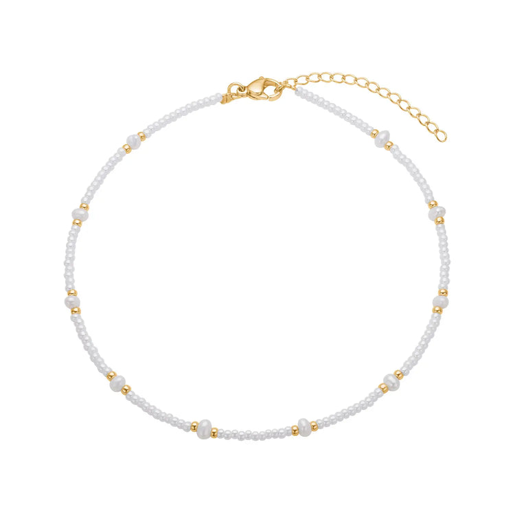 Ankelkæde i Guldbelagt Stål med Ferskvandsperle og Miyuki Sten – Naturlig og Elegant