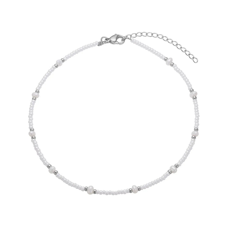 Ankelkæde i Stål med Ferskvandsperle og Miyuki Sten – Naturlig og Elegant