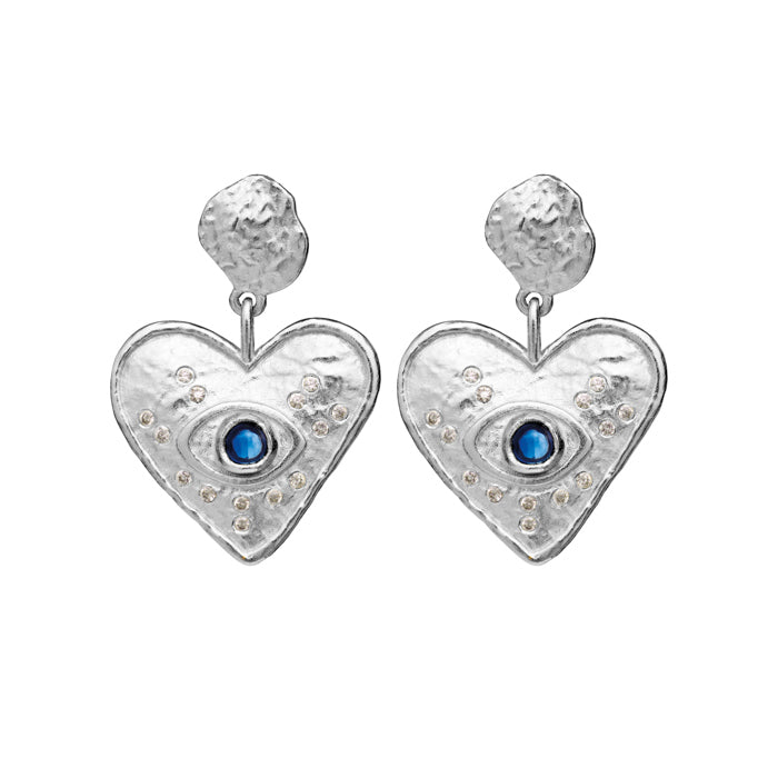 I midten af de kærlighedsfyldte Constantine Earrings blinker den blå kyanit, der på græsk kan oversættes til ’mørkeblå’, og som siges at være en afstressende, healende, beroligende sten. Et smykkepar af ren kærlighed og ro.