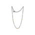 Halskæden, der er 45 cm lang, er håndlavet i 925 sterling sølv. Skiftevis med de lækre ferskvandsperler finder du fine guldplader, hver unikt formet og dekoreret med 18 karat guld. Pladerne er inspireret af Ellen Golden Pico designet og har en organisk cirkelform med en ujævn overflade, der giver et spændende spil af lys og skygger.