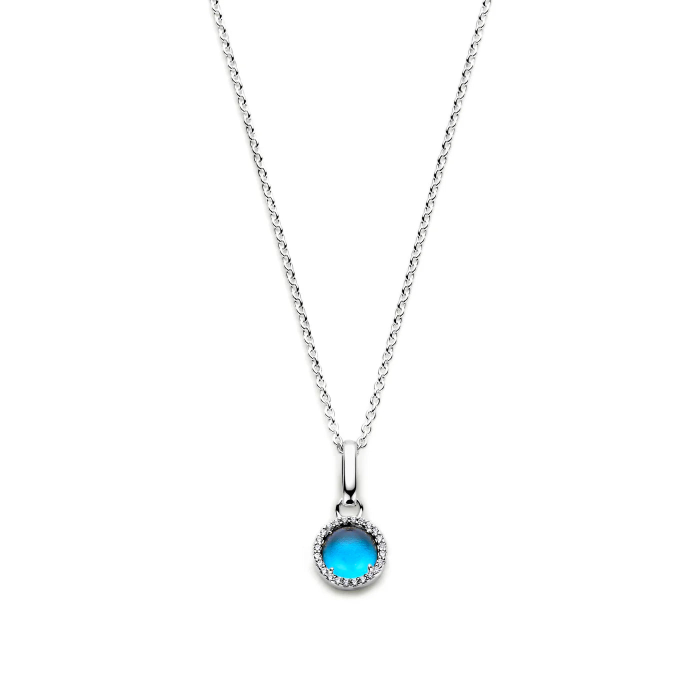 Euphoria vedhænget fra Spirit Icons er et elegant og iøjnefaldende smykke, der kombinerer dyb farve med funklende detaljer. Den blå agat i midten er omkranset af klare zirkonia, som fremhæver stenens intense glød og tilfører glamour til dit look. Halskæden i sølv har en justerbar længde, der gør den nem at tilpasse til enhver stil og anledning.
