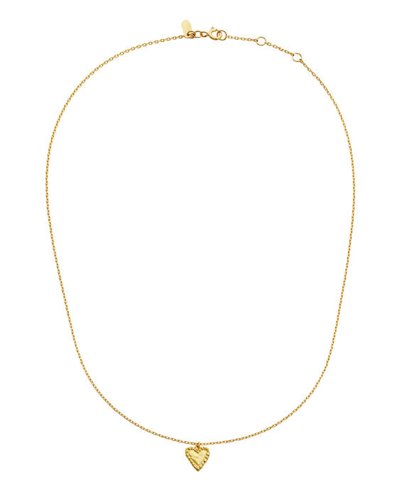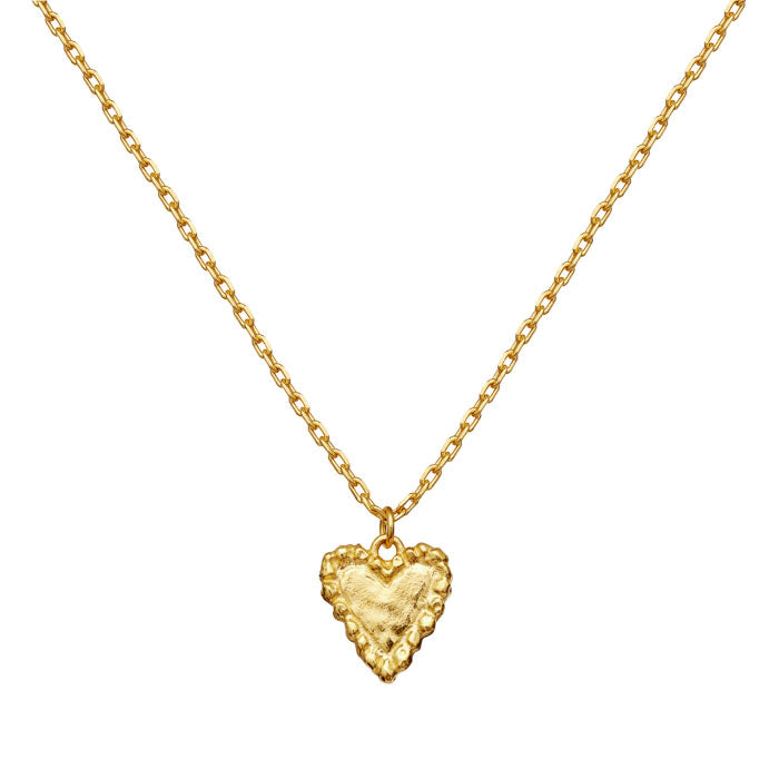Maanestens Fatale Halskæde indfanger ikke — den betager. Med et lokkende gyldent vedhæng formet som et hjerte, opfordrer den dig til at lade dit hjerte vise vej. Smykket er en poetisk hyldest til kærlighedens kraft og til modet til at følge sine følelser. Det håndlavede design og det organiske udtryk gør halskæden til en elegant og meningsfuld gave.