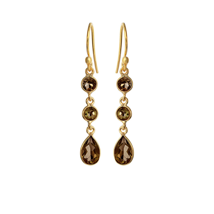 Fg ørebøjle 3 små facet røgkvarts Susanne Friis Bjørner