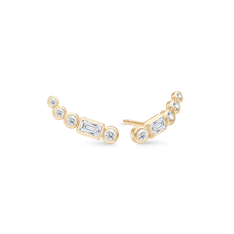 Expressive ear crawlers that wind beautifully up the ear and add a distinctive look to your jewelry box. The petite earrings are produced in 100% recycled 22 carat gold-plated 925 sterling silver and feature a trendy combination of emerald and round cut cubic zirconia. Perfect to combine with other Julie Sandlau earrings. The earrings measure 14 x 3 mm.