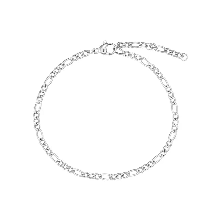 Denne klassiske ankelkæde fra Blicher Fuglsang er fremstillet i rustfrit stål og har det ikoniske figarodesign, som tilfører et tidløst og stilrent udtryk. Med en længde på 29 cm er kæden fleksibel og behagelig at bære – perfekt til både hverdag og sommerens aktiviteter. Den vandfaste kvalitet sikrer lang holdbarhed og gør smykket ideelt til en aktiv livsstil.