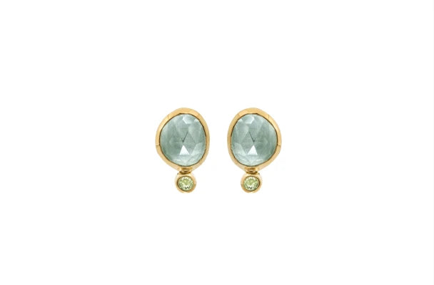 Forgyldt øreringe - rose cut aqua blue quartz, peridot Rabinovich