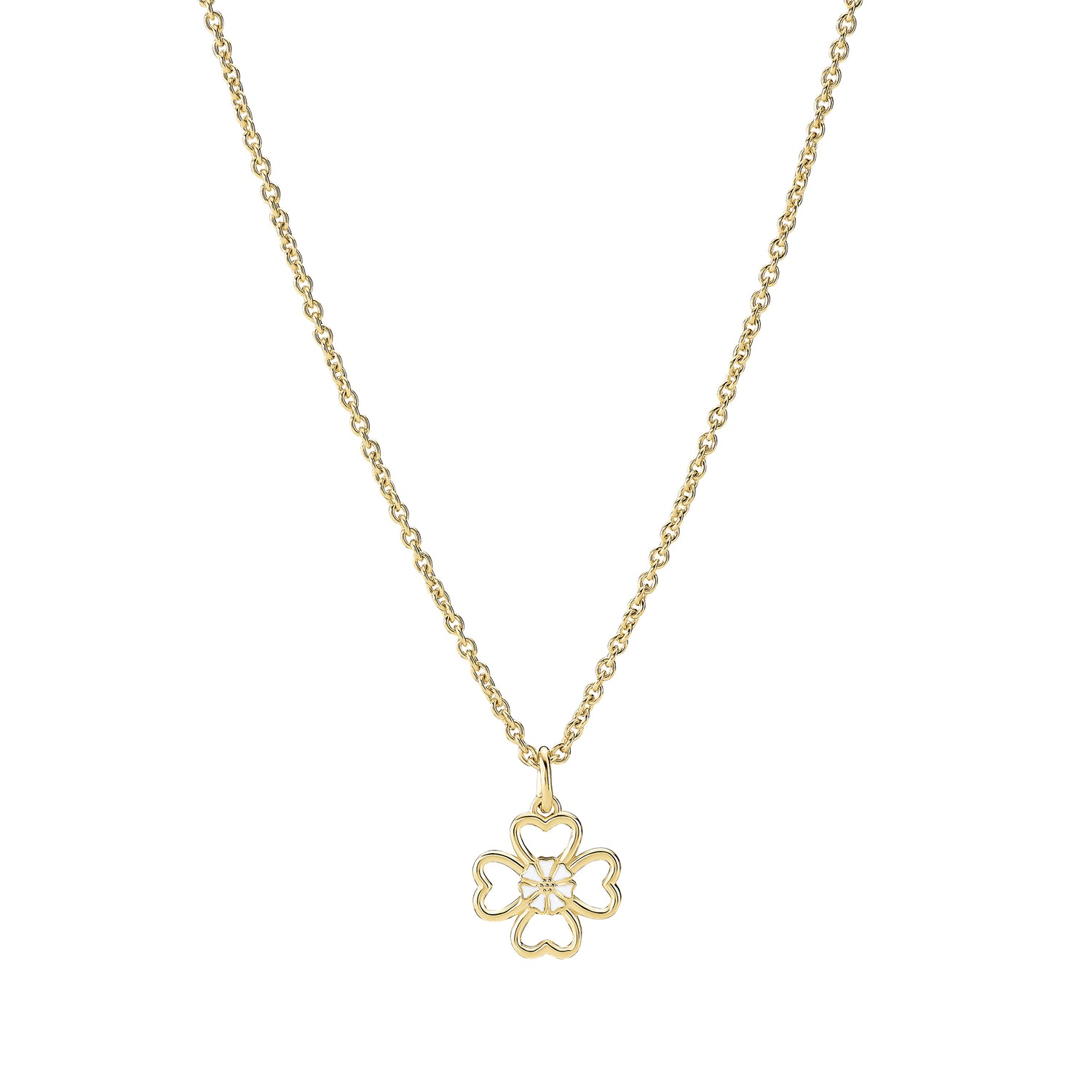 Marguerit collier med kløver – Forgyldt