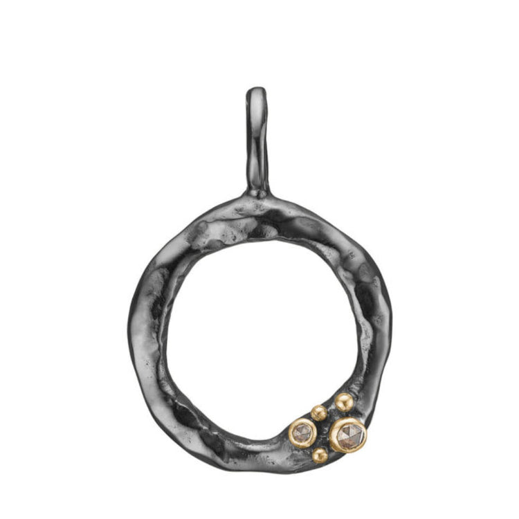 Smukt vedhæng fra By Birdie Sacra Ø22 0,05R0,03B - Hamret oxideret sølv vedhæng med rose cut (0,05ct) & brilliantslebent diamant (0,03ct)