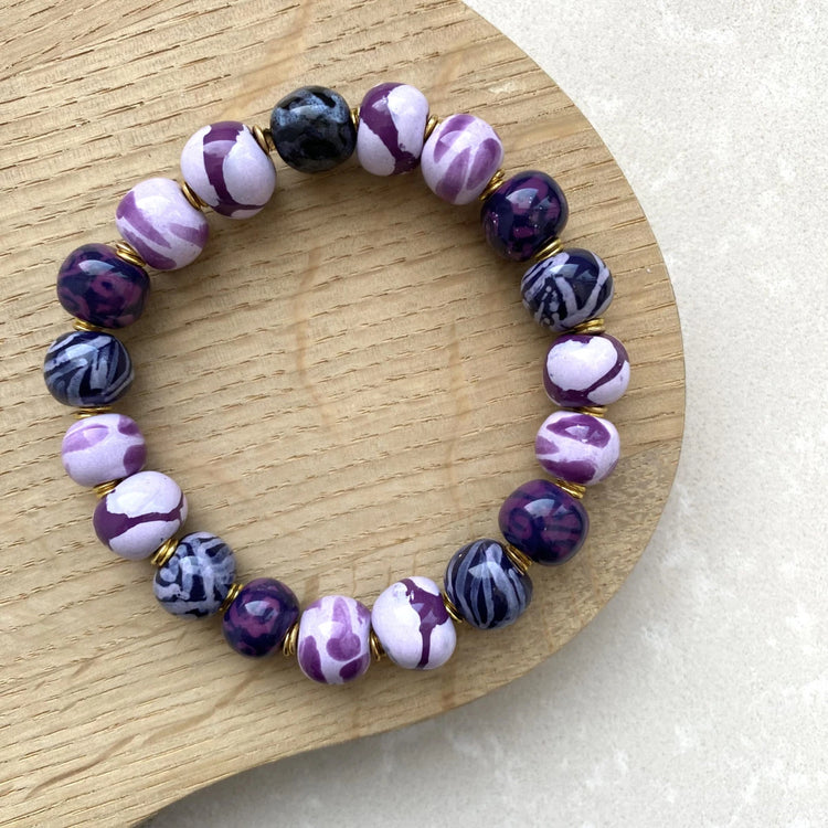 Lækkert Purple match elastik Perlearmbånd - Kazuri