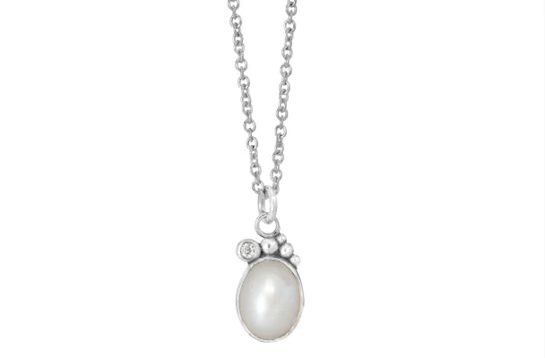 Collier i Sterlingsølv med 10.5x8.5mm hvid ferskvandsperle og 2mm zirkonia